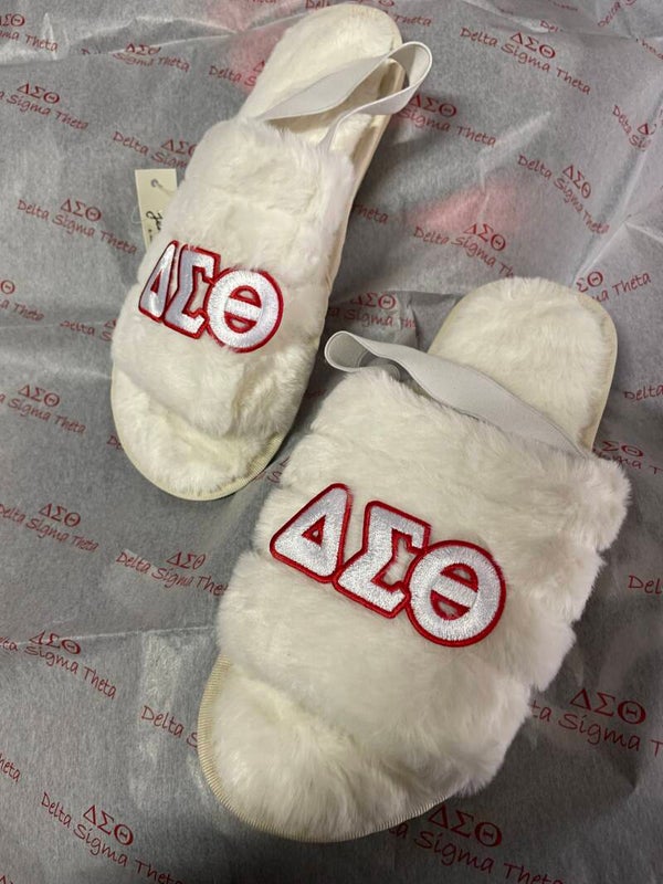 Furry slippers in red or white
